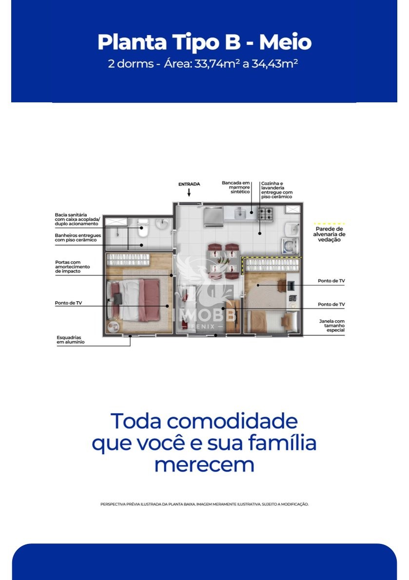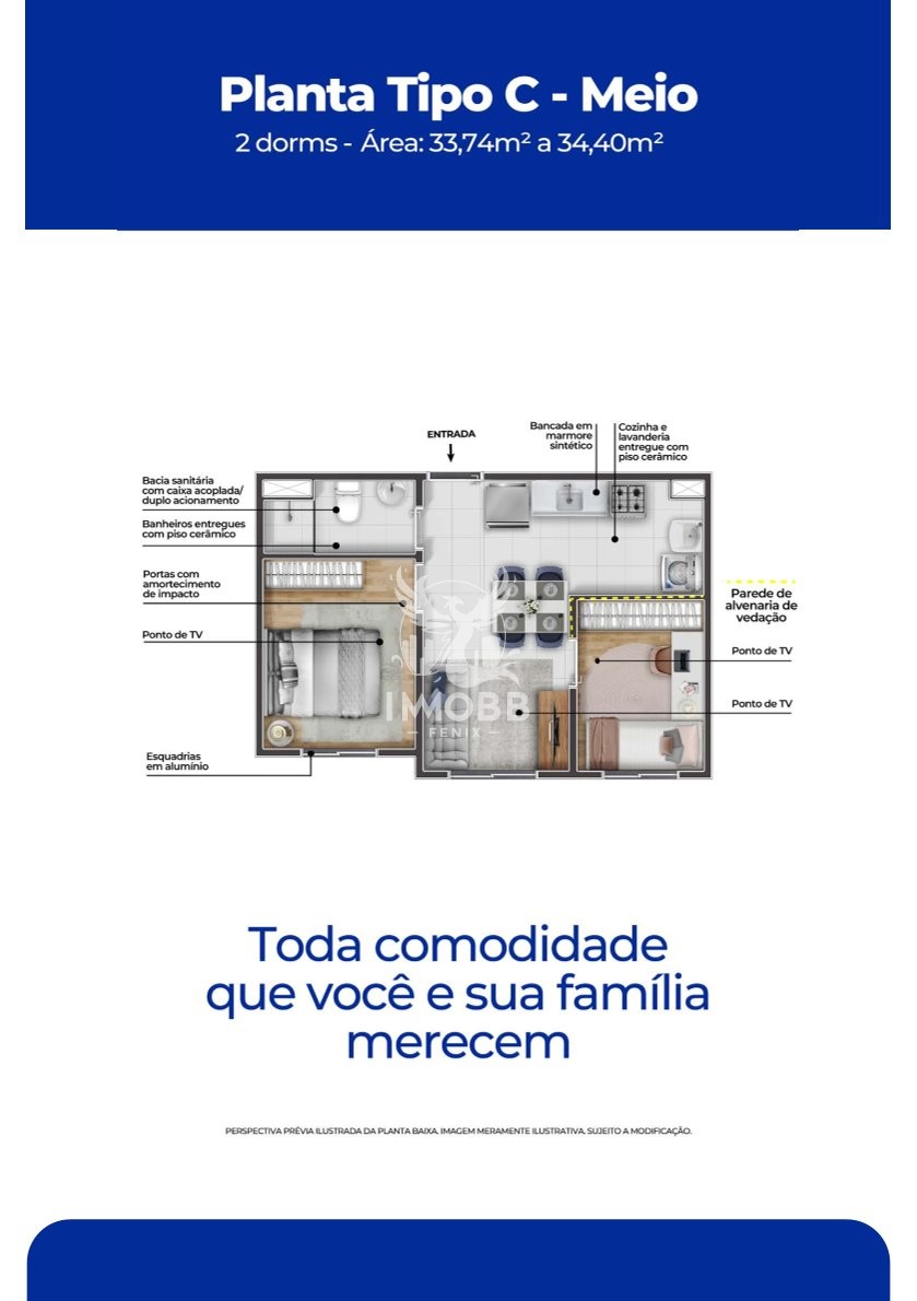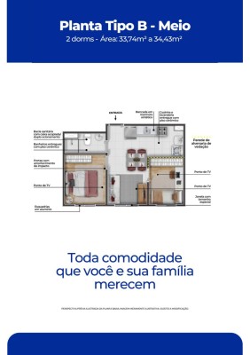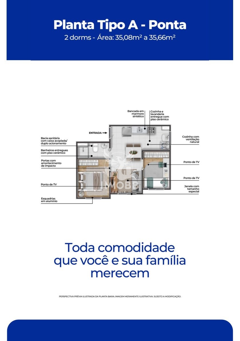 Com uma área total de 32,00 m², o apartamento é ideal para quem busca praticidade sem abrir mão do conforto. Possui dormitórios, suítes e banheiros a serem definidos, além de vagas de estacionamento e box garagem disponíveis.